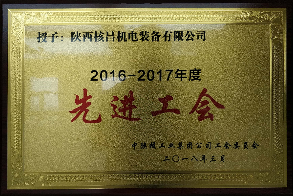 中陜核工業(yè)集團公司工會委員會“2016-2017年度先進工會”稱號
