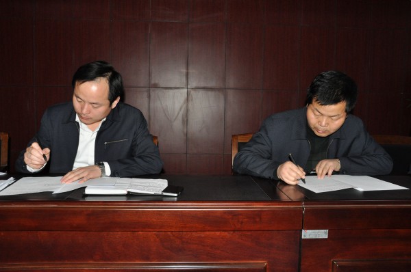 接著,總經(jīng)理王超宏與副總經(jīng)理楊昭簽訂了經(jīng)營目標(biāo)、安全生產(chǎn)責(zé)任書。楊昭副總經(jīng)理又與七個事業(yè)部負(fù)責(zé)人簽訂了2015年度經(jīng)營目標(biāo)責(zé)任書和安全生產(chǎn)責(zé)任書??偨?jīng)理王超宏同志與公司六個黨支部簽訂了2015的黨風(fēng)廉政建設(shè)責(zé)任書。